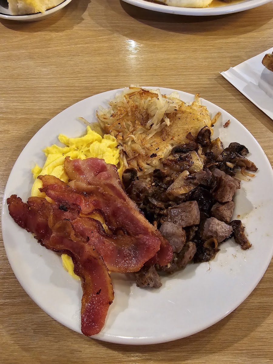 Cory Jarvis' comments emphasize the traditional Bob Evans experience with a twist. While he had his heart set on the sausage patties, he received links instead, a delightful surprise in its own right. His dish of sausage, bacon, eggs, and hash browns with pancakes epitomizes comfort food, crafted to fortify you for your travels ahead. Despite minor critiques, he recognized the effort made by the staff, which speaks volumes about their commitment to guest satisfaction.