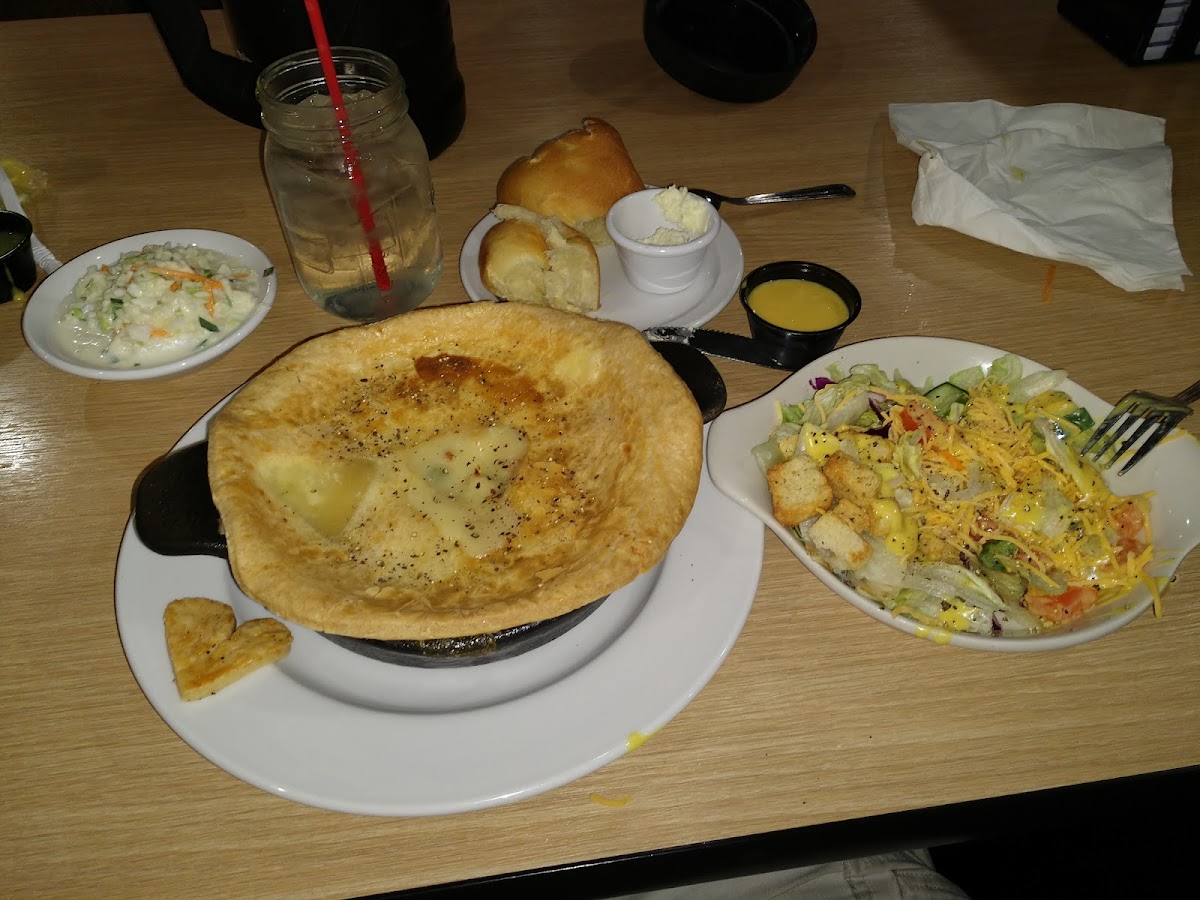 Started off with a sweet tea that wasn’t. Think three different people returned the ice tea. I ordered the chicken fried steak, mash potatoes and green beans. A side salad for an appetizer. Server was great. The side salad was really good but hard to keep it in or mix in that little dish. The chicken fried steak was skimpy. There wasn’t any meat or such a thin piece. Felt like o was eating thick chicken skin off fried chicken. But it’s what one should expect. Green beans were tasty and good. As the food was at par, I still think I’ll stick to breakfast at these restaurants.